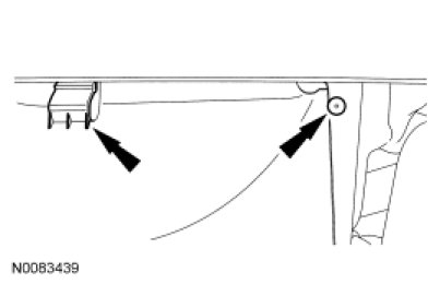 9. Remove the pushpin and press the position retaining tab and rotate the lower cooling fan shroud upward until the position retainer tab locks into position.