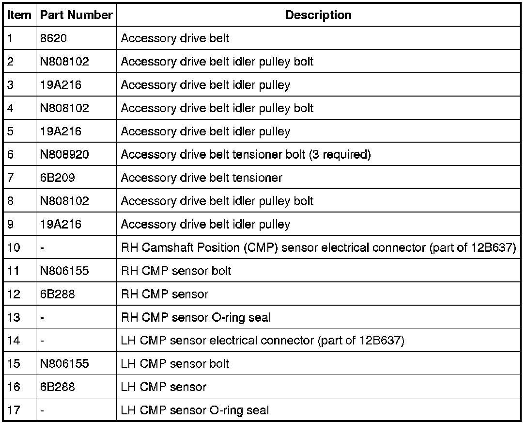 Front End Accessory Drive (FEAD), LH and RH Camshaft Position (CMP) Sensors