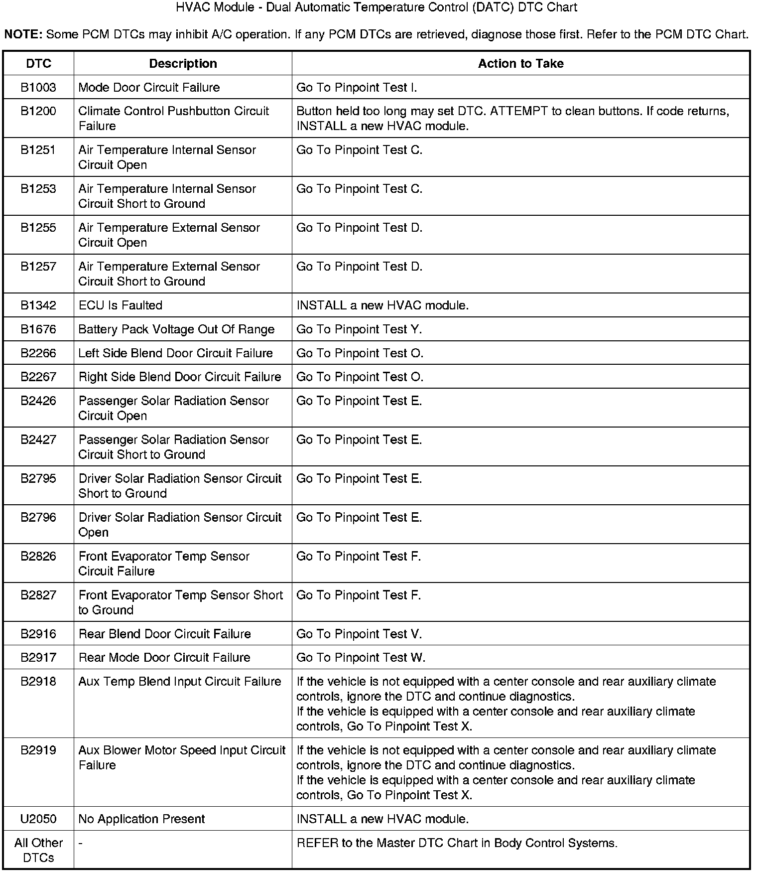 HVAC Module - Dual Automatic Temperature Control (DATC) DTC Chart