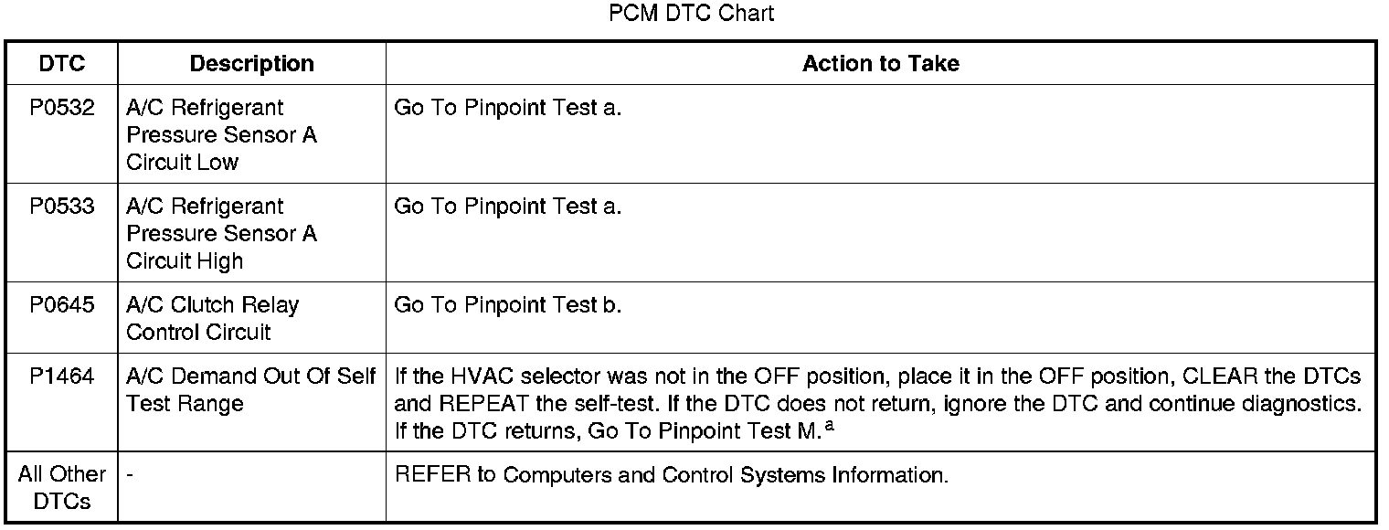 PCM DTC P1464 will set if the function selector is in PANEL with A/C button pressed, DEFROST or MAX A/C mode when the on-demand self test is being run.