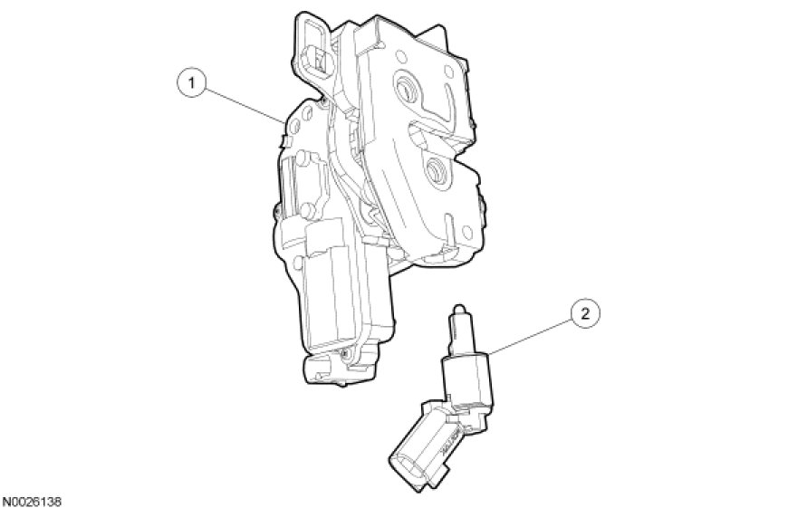 1. Remove the door latch. For additional information, refer to Front Door Latch Removal and Replacement or Rear Door Latch Removal and Replacement.