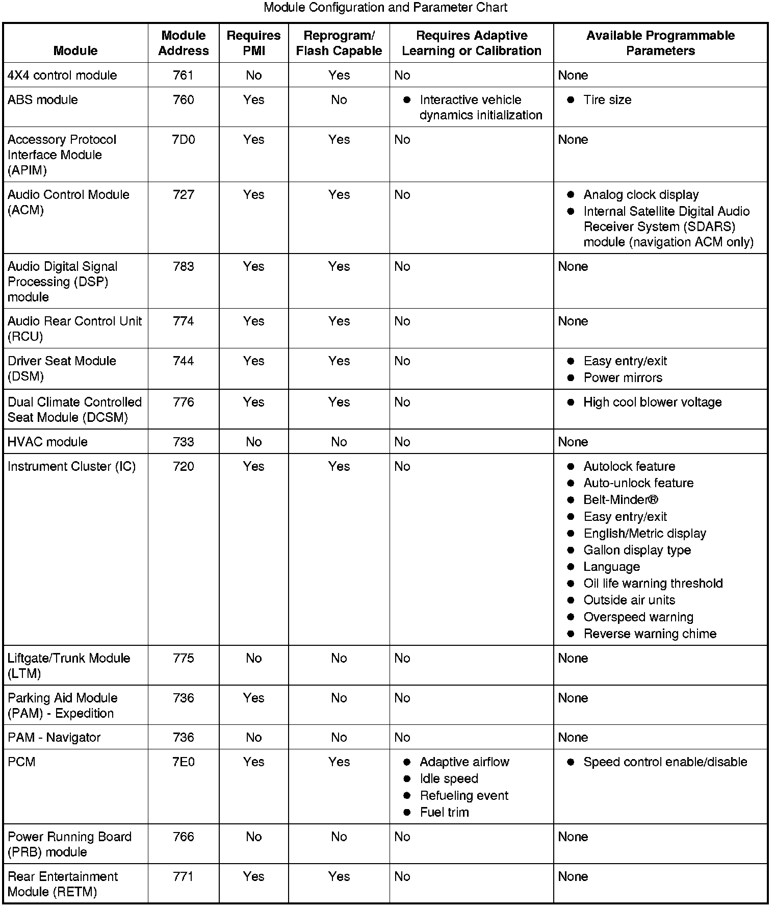 Programmable parameters are customer preference items that may be modified by the dealer via scan tool or in some cases modified by the customer following a procedure listed in the vehicle Owner's Literature. While many configuration options may exist for a module, only a few of these options are programmable parameters.