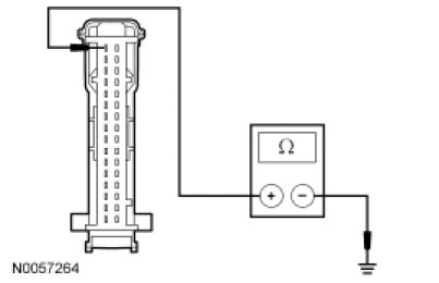 - Measure the resistance between the RETM C949-1, circuit GD114 (BK/BU), harness side and ground.