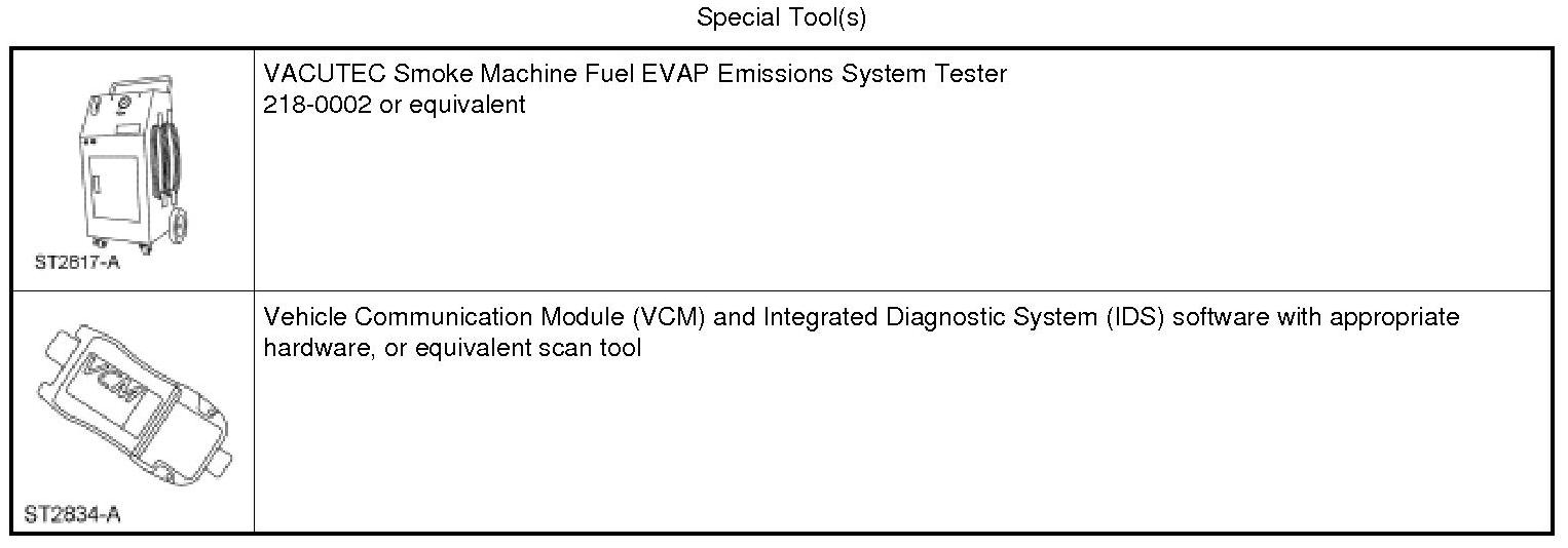 Introduce smoke from the VACUTEC Smoke Machine Fuel EVAP Emissions System Tester into the EVAP system and verify that smoke is exiting the fuel tank filler pipe neck area. For additional information, refer to the manufacturer's instructions.