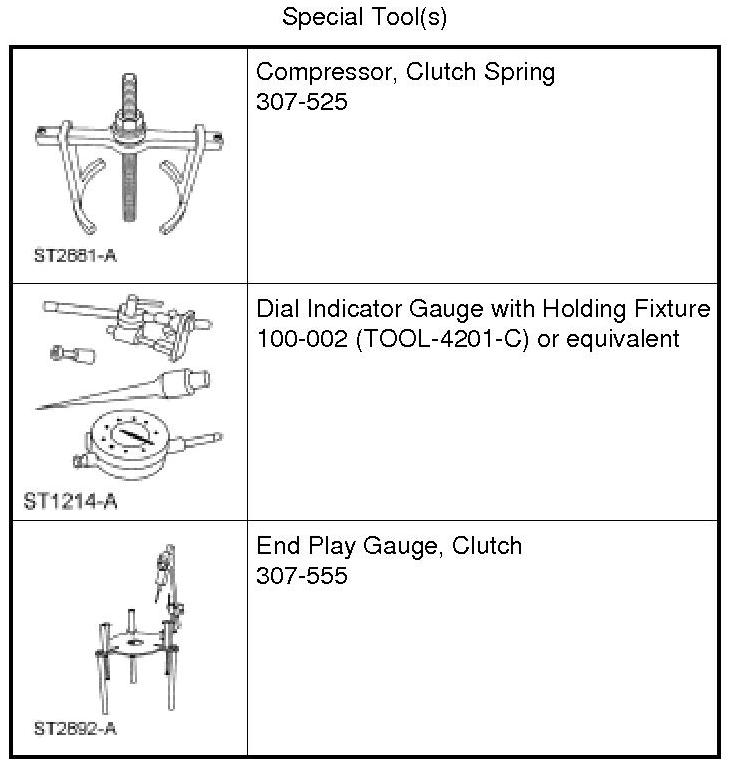Install the forward clutch assembly into the Clutch End Play Gauge 307-555 and install the Dial Indicator Gauge with Holding Fixture 100-002 and position the plunger so it fits into the opening of the snap ring.