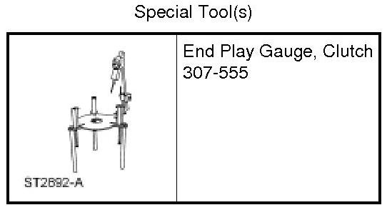 1. Position the forward clutch assembly in the Clutch End Play Gauge 307-555 and install the overdrive clutch pack onto the forward clutch and planetary gear set.