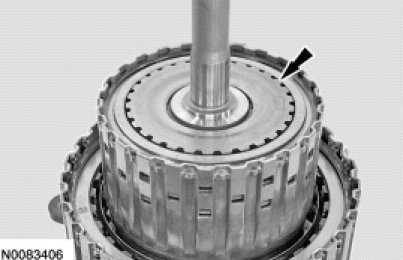 6. NOTICE: Do not install the snap ring on the forward clutch hub with the snap ring gap in the same position as the original snap ring or damage to the transmission can occur.