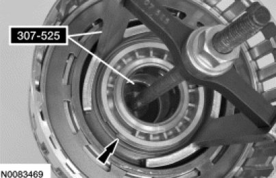 5. Using the Clutch Spring Compressor 307-525, install a new intermediate clutch return spring retainer.
