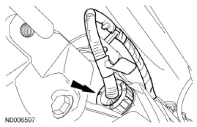 9. NOTICE: Do not touch the electrical connector pins or the exposed solenoid tabs on the transmission vehicle harness connector. Electrostatic discharge may occur and may cause damage to the mechatronic unit.