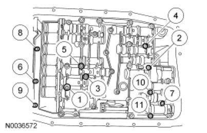 Position the mechatronic assembly in place and loosely install the 11 bolts.