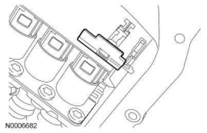 With the release tab down and unlocked, push the outer shell of the transmission vehicle harness connector into the transmission. Make sure that the transmission vehicle harness connector is fully seated into the mechatronic assembly.