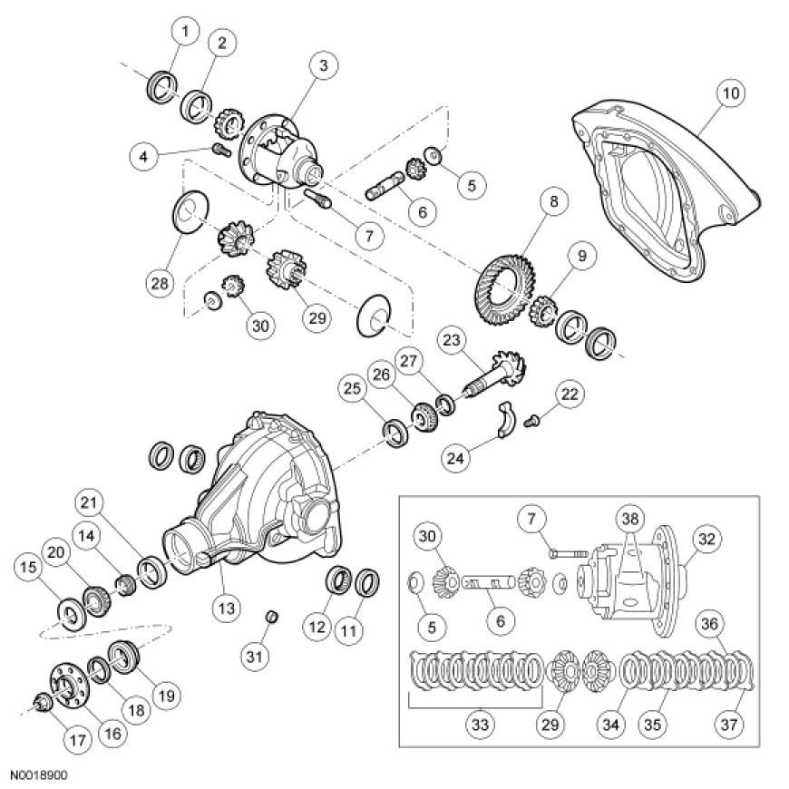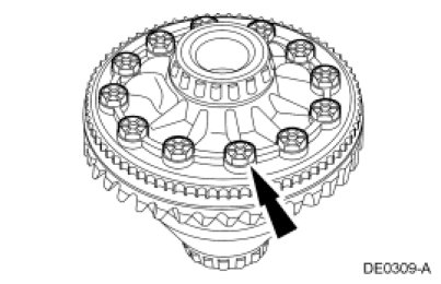 Remove the differential assembly in the following sequence.