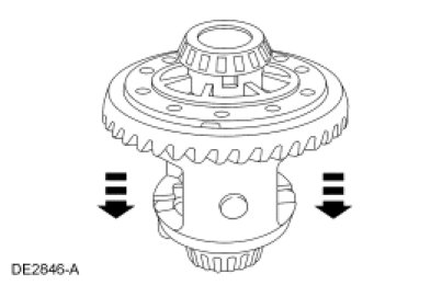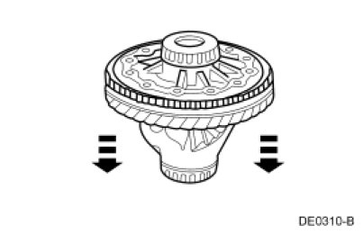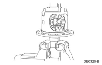 1. Rotate the differential case to make sure the differential bearings are seated.