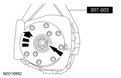 Using the Drive Pinion Flange Holding Fixture, remove the drive pinion nut.