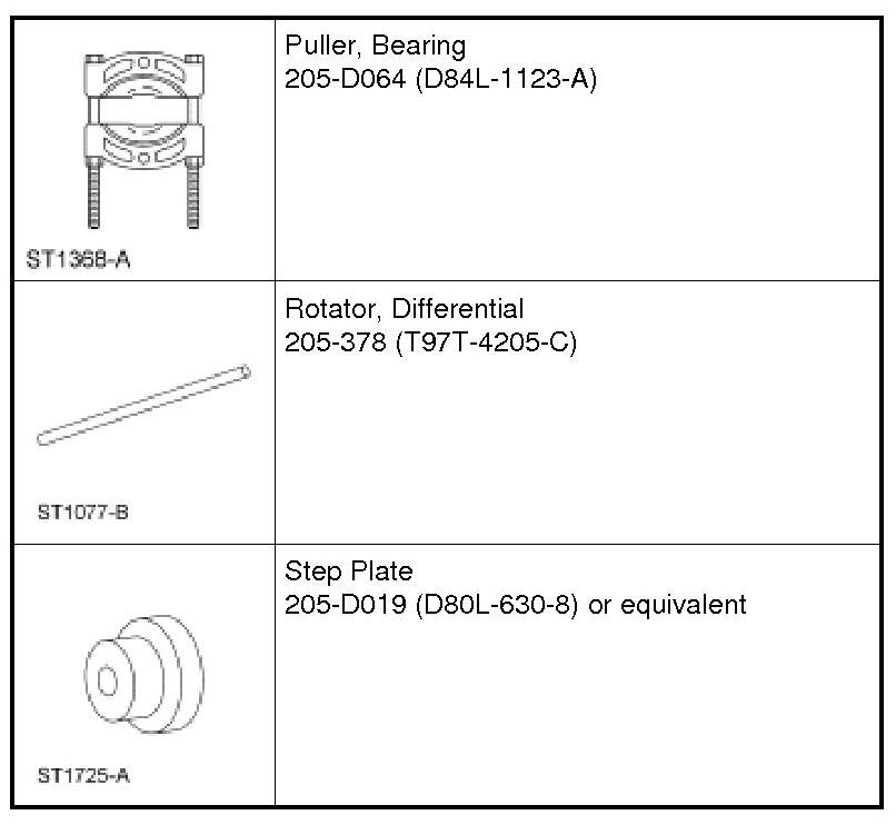 12. Remove the differential case from the rear axle housing, and remove the differential bearings using the 2-Jaw Puller and Step Plate.
