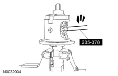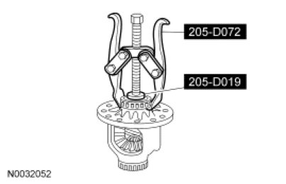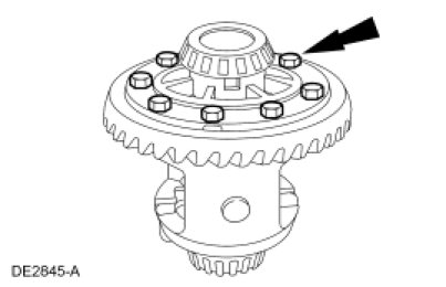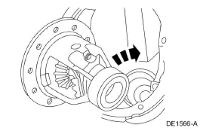 10. NOTE: Visually inspect the differential carrier bearings and cups for discoloration or other signs of bearing failure.