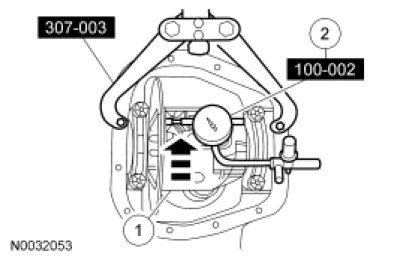 6. NOTICE: Mark the position and location of the differential bearing caps as the arrows may not be visible. Always install the differential bearing caps in their original locations and positions or damage to the components may occur.
