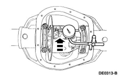 NOTE: If the differential ring gear backlash between teeth measurement, taken at the beginning of this procedure, did not exceed the specification, proceed to Final disassembly in this procedure. If the differential ring gear backlash between teeth measurement exceeds the specification, the cause may be a warped differential ring gear, a damaged differential case or loss of differential bearing preload. Verify the cause of the excessive runout.