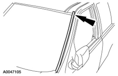 NOTE: Avoid scratching the pinch weld. Repair all minor scratches or exposed metal on the pinch weld following manufacturer's instructions. Use the same brand pinch weld primer, glass primer and urethane adhesive.