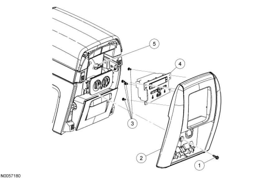 3. Remove the 2 screws securing the rear trim panel to the floor console.