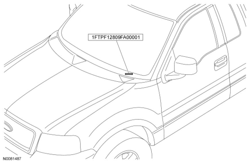 The Vehicle Identification Number (VIN) is a 17-digit combination of letters and numbers. The VIN is stamped on a metal tab riveted on the instrument panel, top upper left of the dash. The VIN is also found on the Vehicle Certification (VC) label.