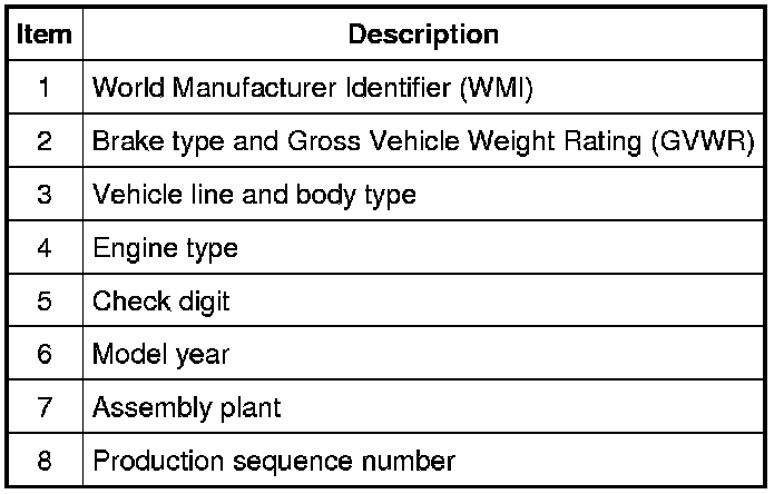 VIN positions 5 through 7 indicate the vehicle line and body type.