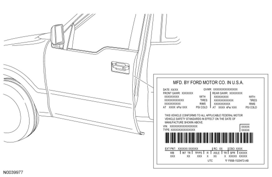 The Vehicle Certification (VC) label contains information on the manufacturer name, the month and year of manufacture, the certification statement and the Vehicle Identification Number (VIN). This label also includes Gross Vehicle Weight Rating (GVWR) information.