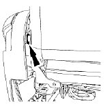 ^ Insert an appropriate tool behind the cushion side shield release the retainer and remove the handle.
