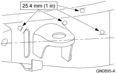 - The drilled hole is at least the specified distance from any other existing bracket or component of the frame.