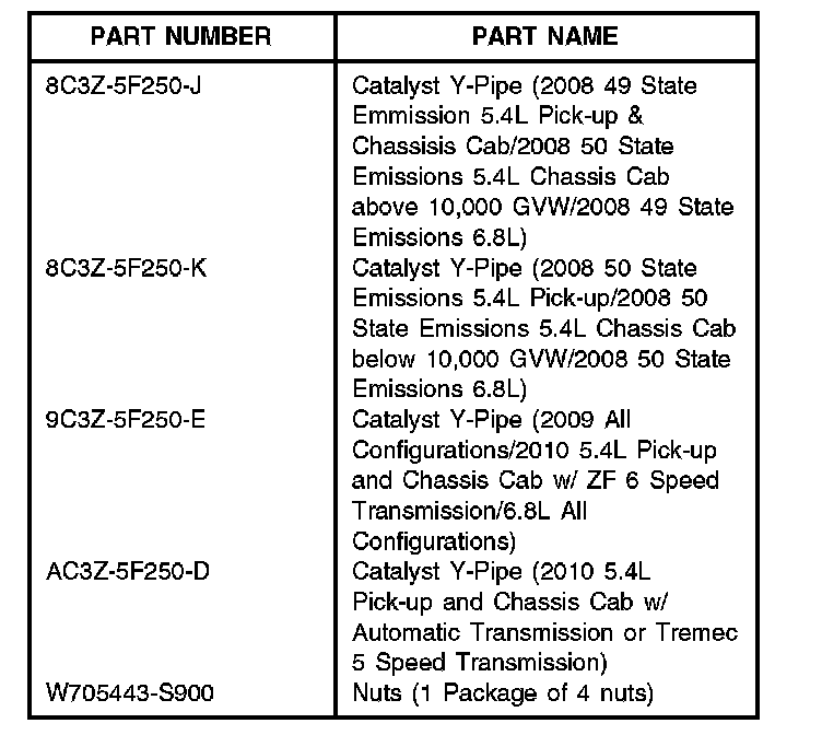 Some 2008-2010 F-Super Duty 250-350 vehicles equipped with 5.4L and 6.8L engines and may exhibit any of the following symptoms: Audible noise or rattle from the Catalytic Convertors, Lacks power and MIL illumination with one or more the following DTCs: P0420, P0430, P0148, P0191, P0607 or PO61B.
