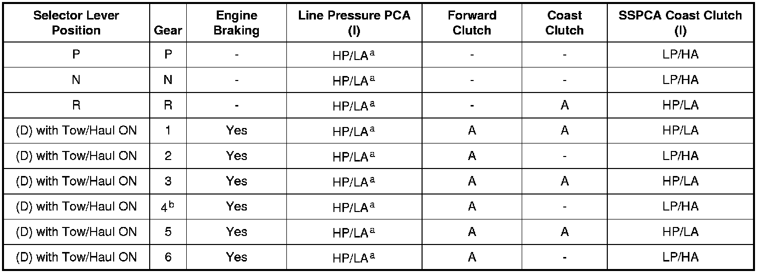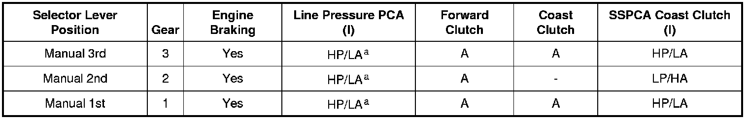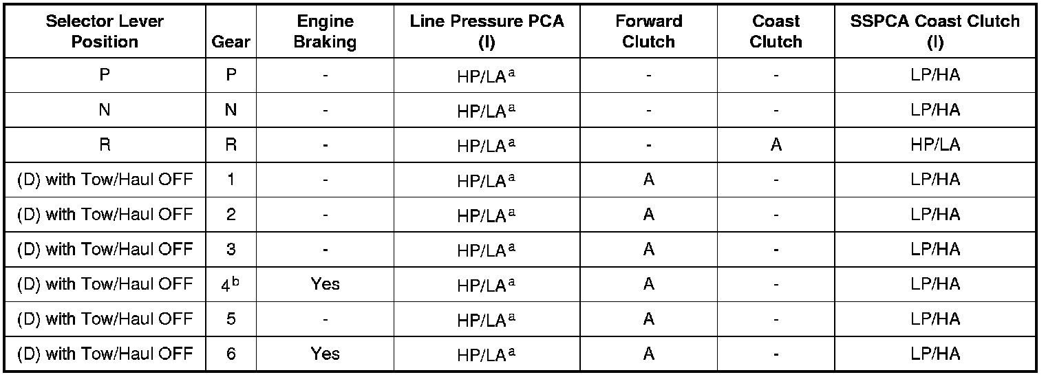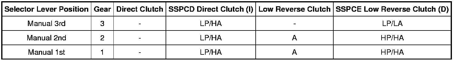 (b) = SSPCD commanded pressure as viewed on diagnostic equipment will be zero. The manual valve controls pressure to the direct clutch in the R detent position.