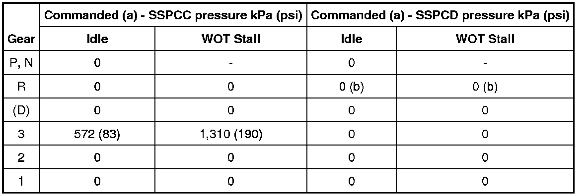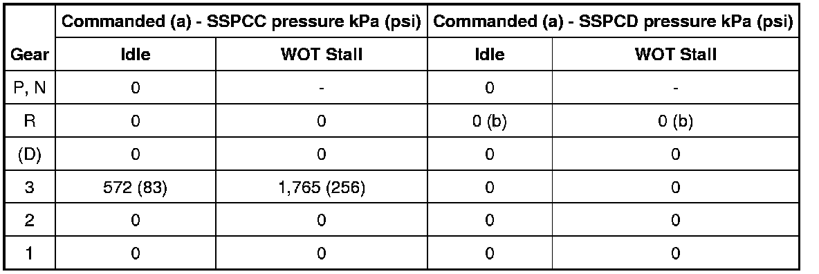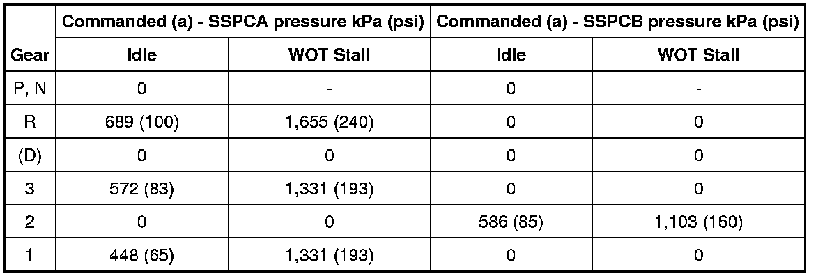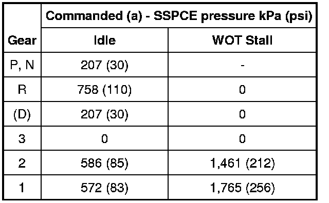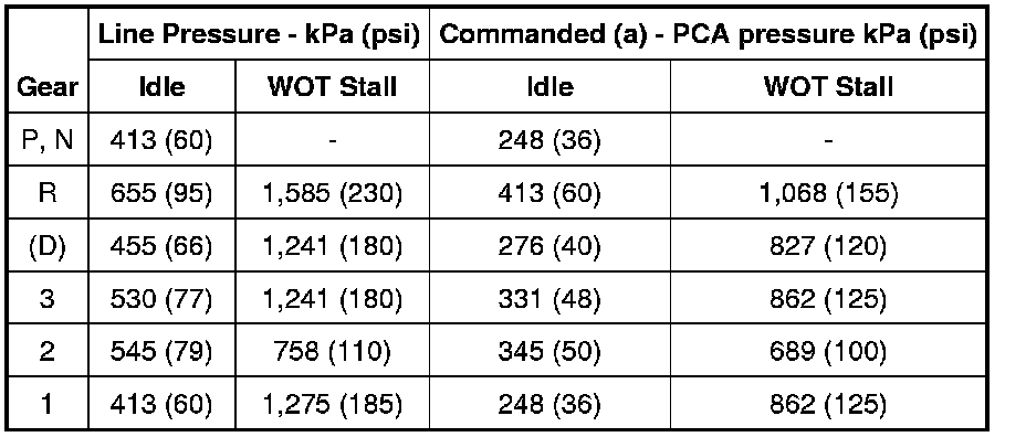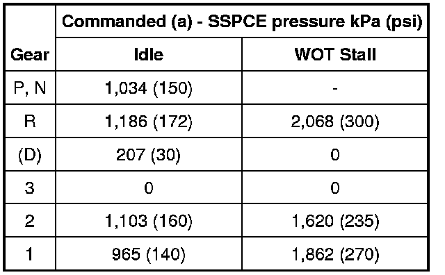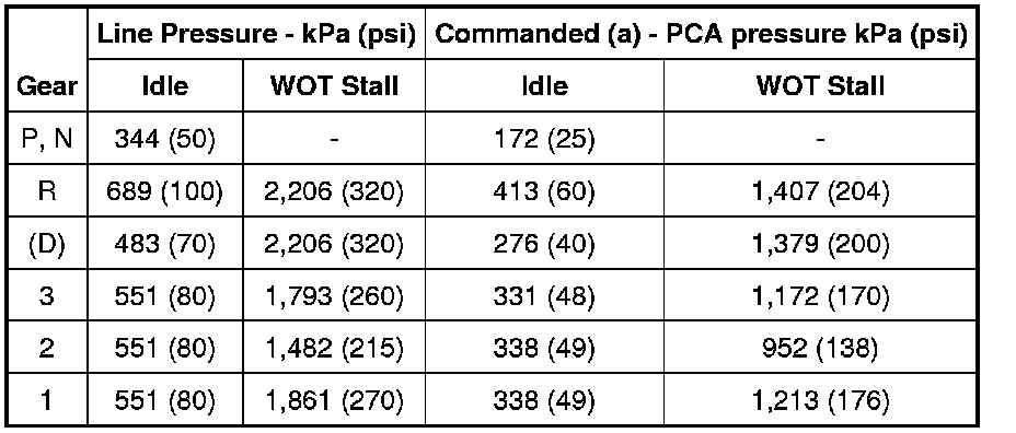 NOTE: Actual and commanded pressures will vary based on calibration and transmission adaptive strategies. All pressures listed are approximate.