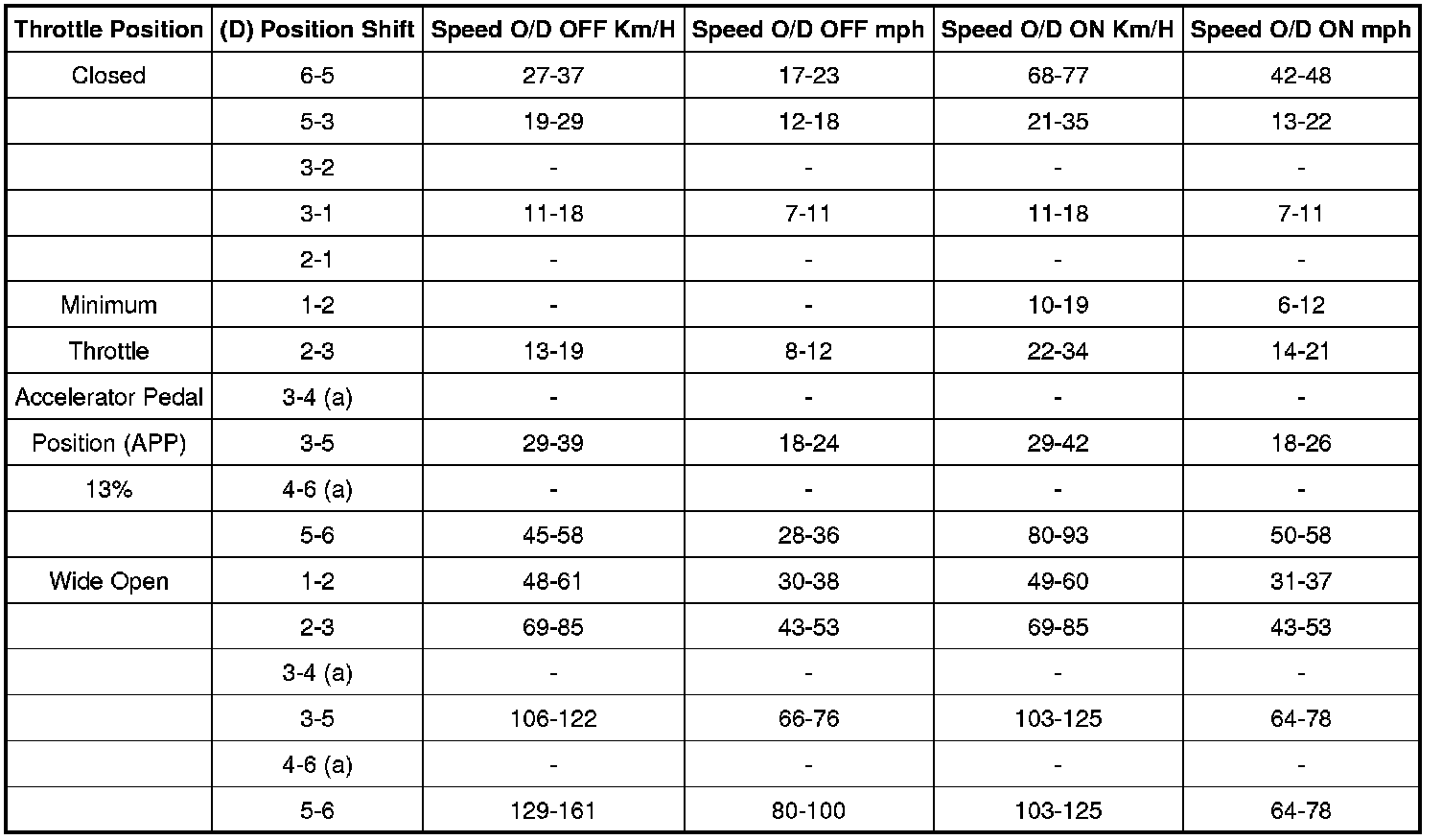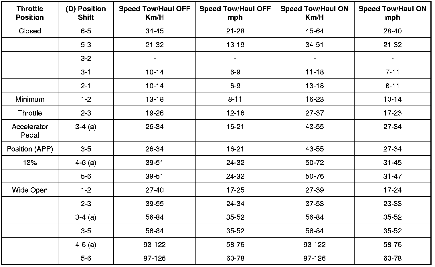 NOTE: All shift speeds are nominal and will vary with calibration, model, axle ratio and tire size.