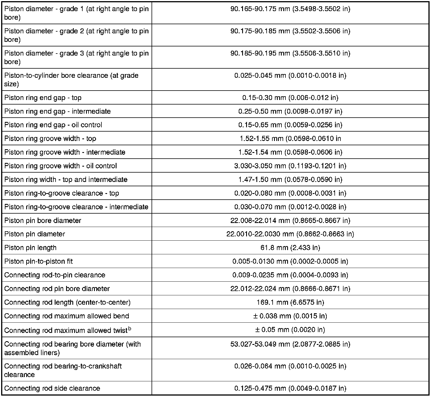 b The pin bore and crank bearing bore must be parallel and in the same vertical plane within the specified total difference when measured at the ends of a 203 mm bar, 105.5 mm on each side of rod centerline.