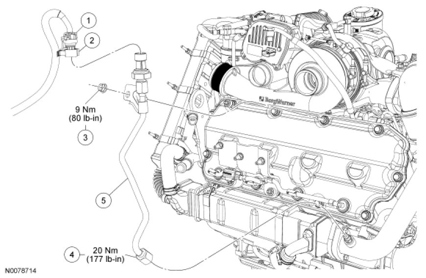 3. NOTE: Use a backup wrench on the OC-EGR fitting when tightening the EP sensor and tube assembly fitting.