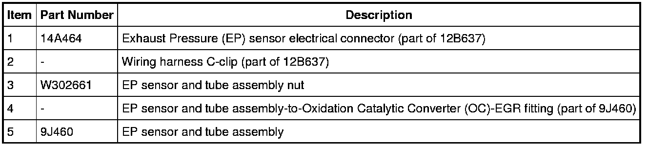 4. NOTE: Use a backup wrench on the Oxidation Catalytic Converter (OC)-EGR fitting when loosening the EP sensor and tube assembly fitting.