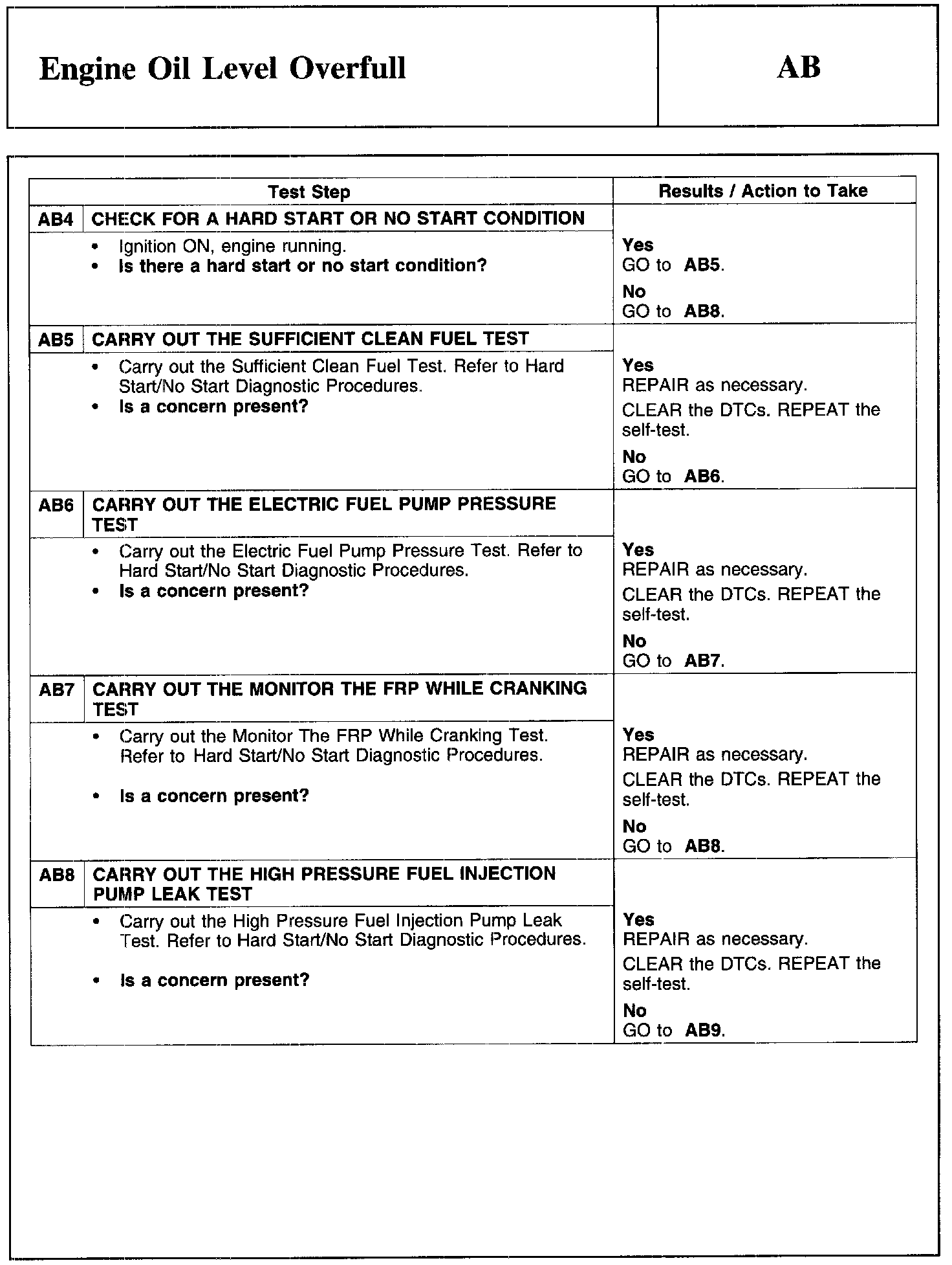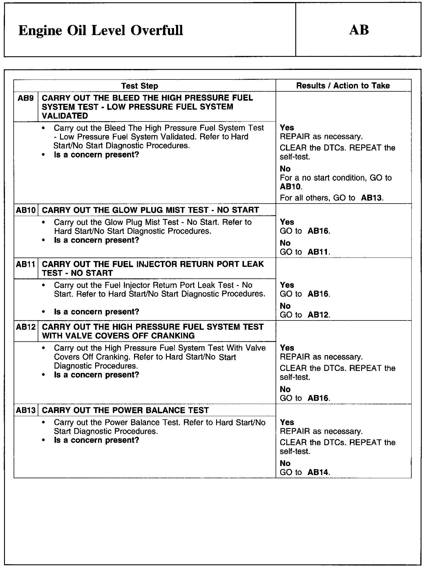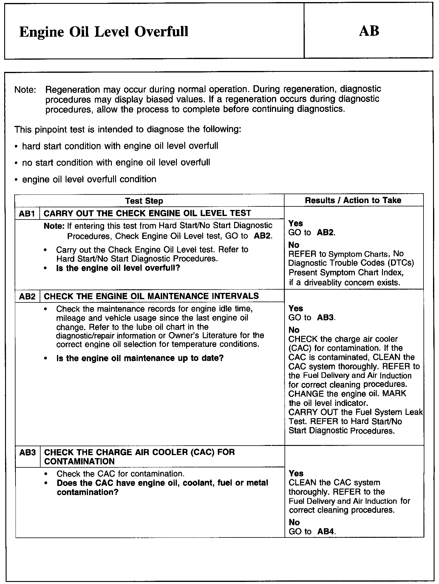 PINPOINT TEST AB: ENGINE OIL LEVEL OVERFULL