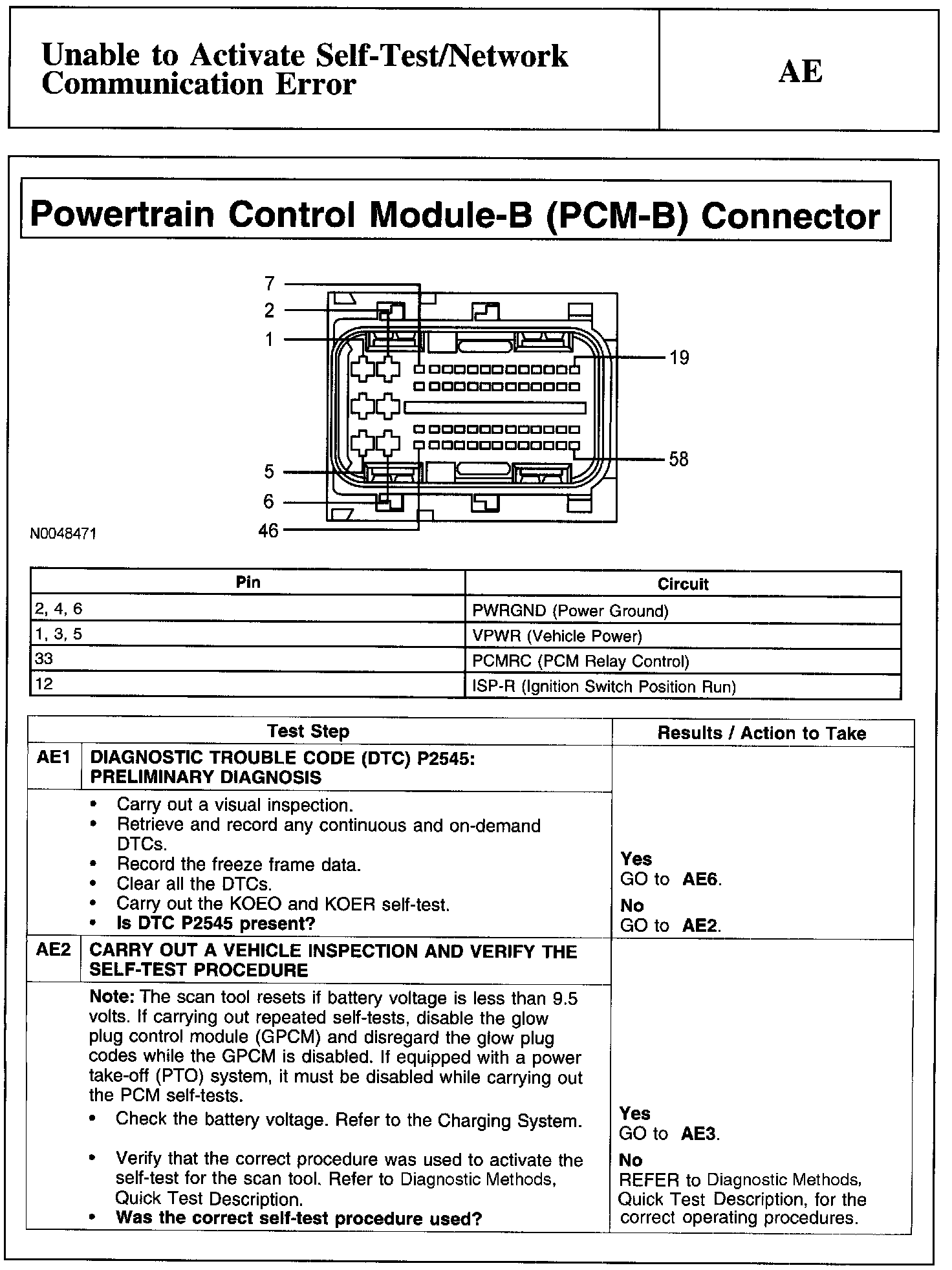 Test AE: Unable To Activate Self-Test/Network Communication Error