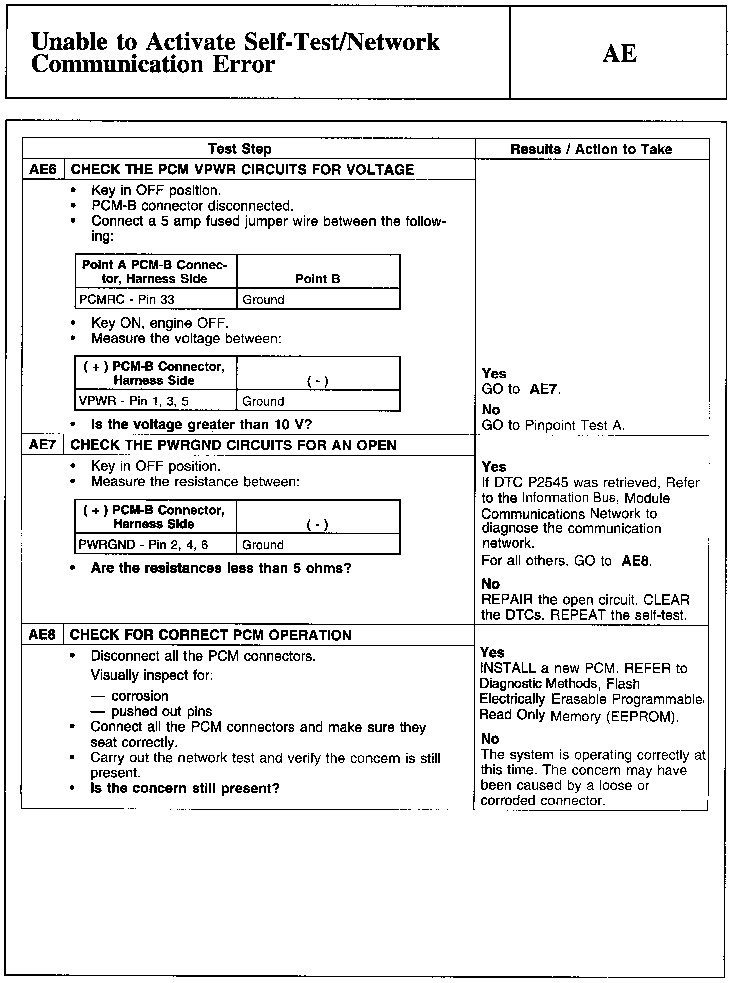 PINPOINT TEST AE: UNABLE TO ACTIVATE SELF-TEST/NETWORK COMMUNICATION ERROR