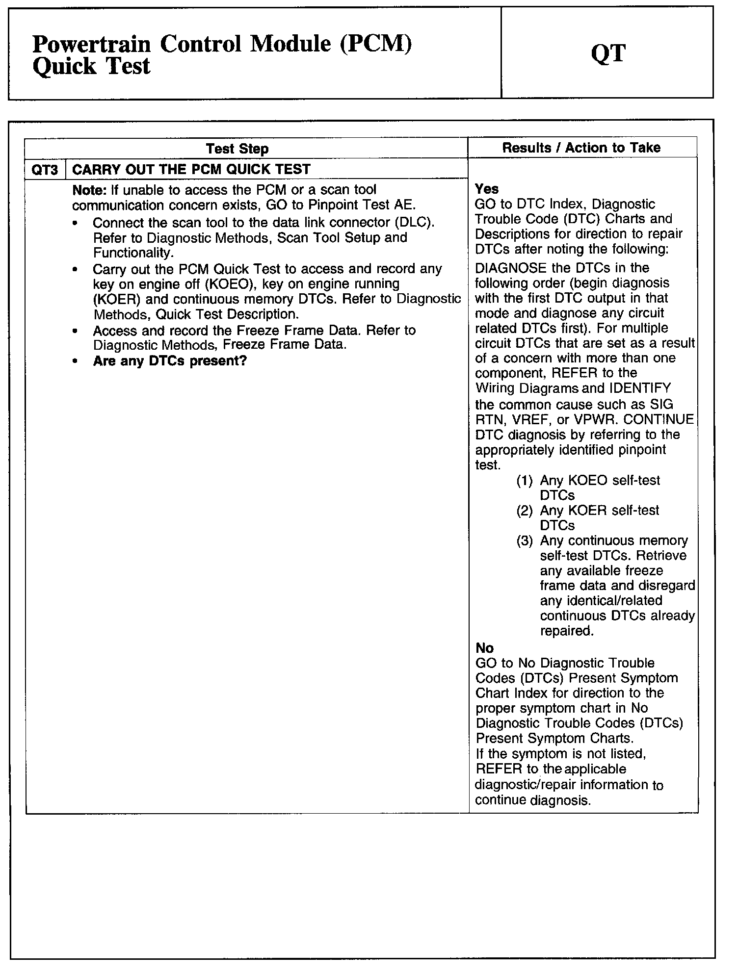 QT: POWERTRAIN CONTROL MODULE (PCM) QUICK TEST