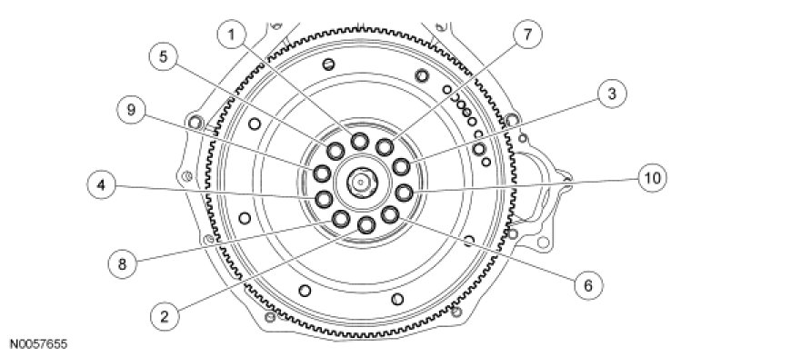 and install the 10 new bolts. Tighten the bolts in 2 stages, in the sequence shown.
