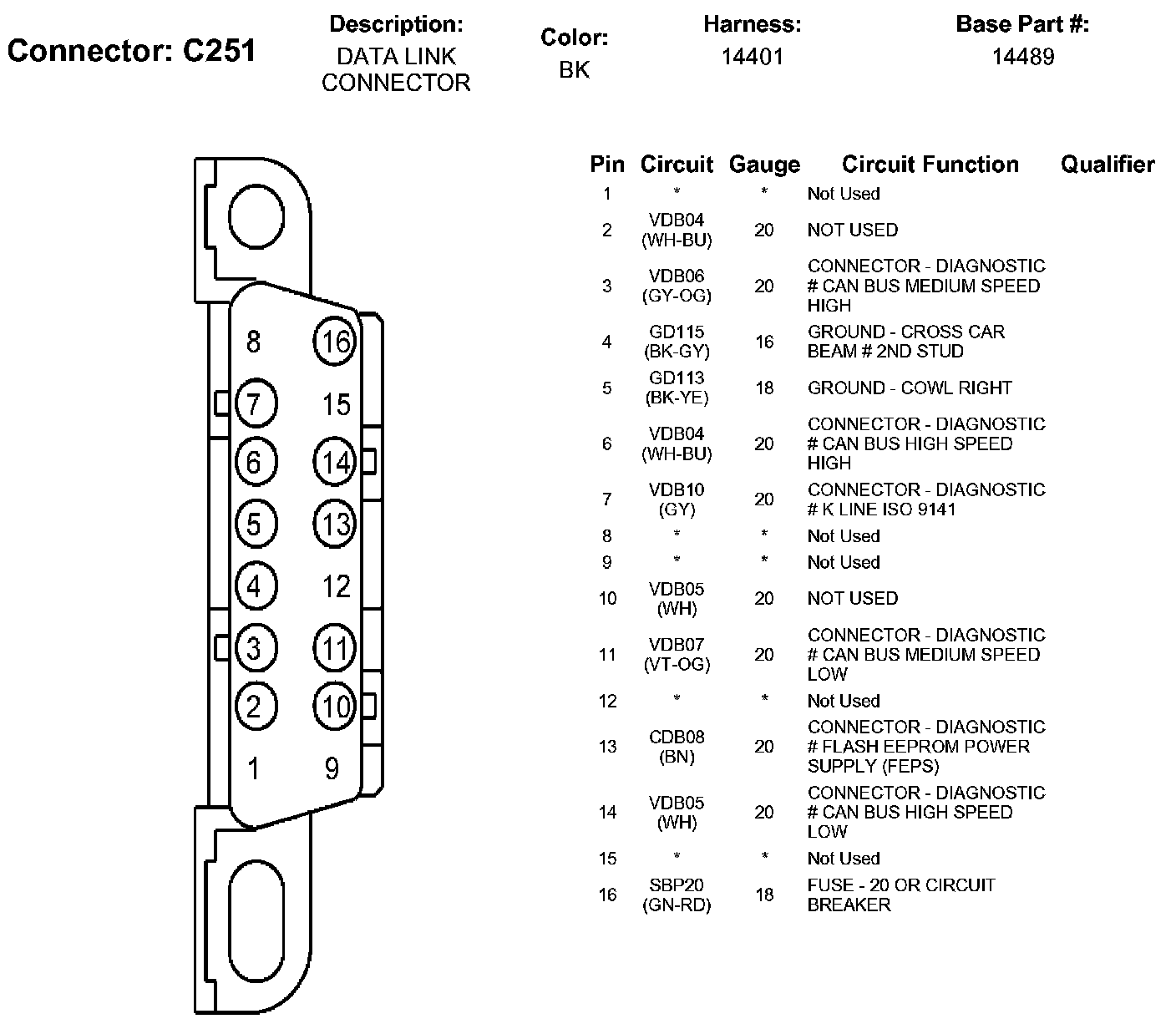 Data Link Connector: Diagrams