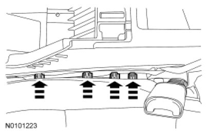 18. NOTE: When installing the front of the center console trim panel, feel behind the panel to guide the panel into the retainer.