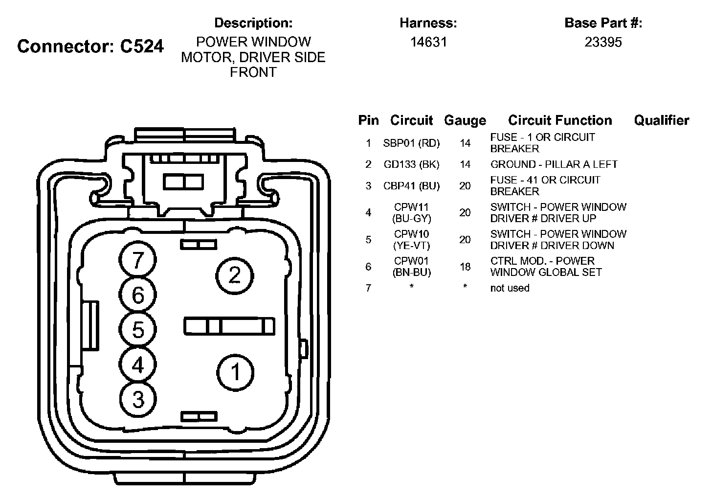 Power Window Motor, Driver Side Front