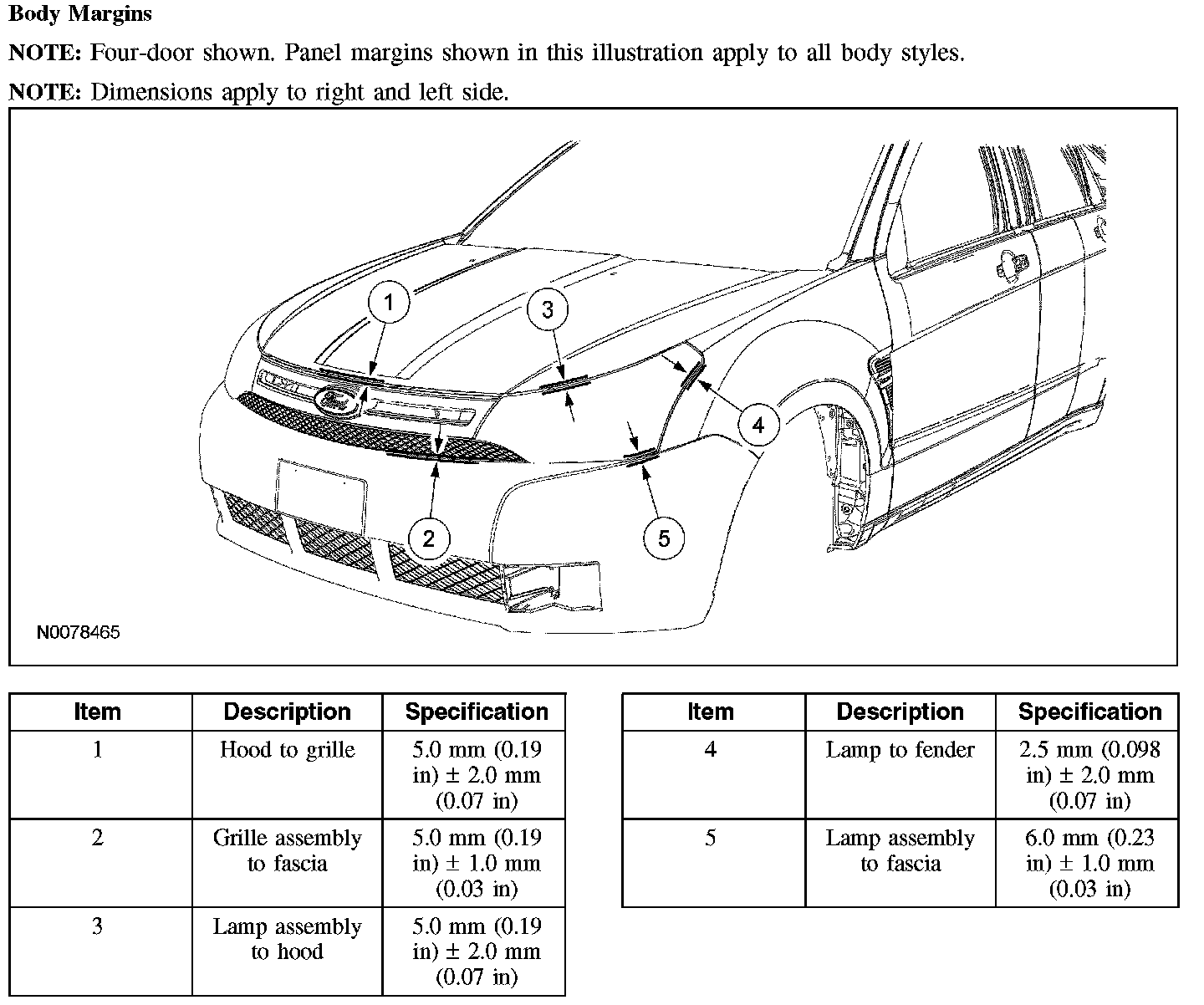 Body Side Closure Dimensions - 4-Door Sedan: