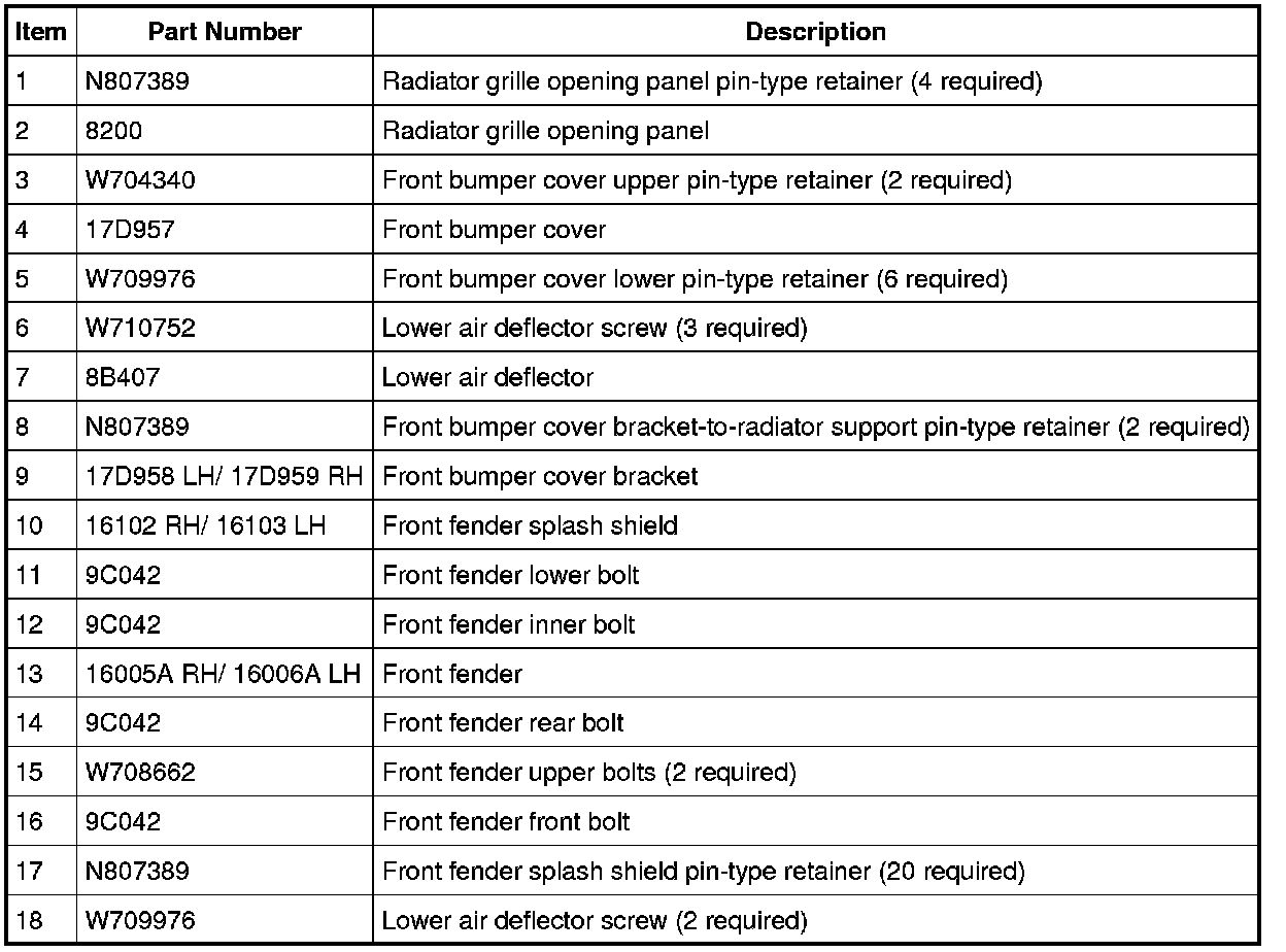 Front End Body Panels - Exploded View