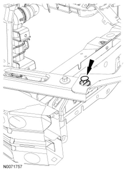 10. Remove the pin-type retainers from the left and right air deflectors-to-radiator grille opening panel reinforcement and remove the air deflectors.