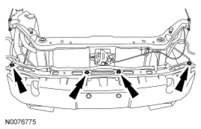 12. Remove the radiator grille opening panel reinforcement-to-bumper beam bolts.