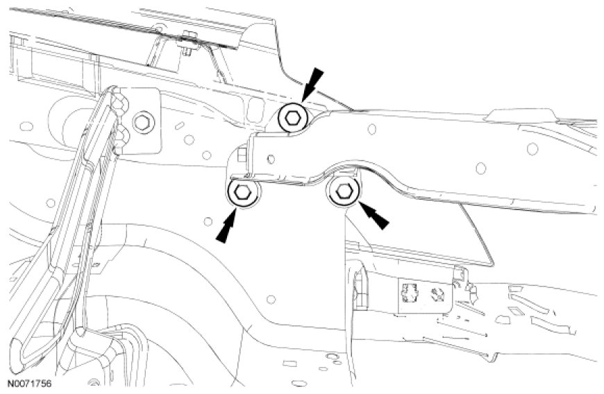 13. Remove the radiator grille opening panel reinforcement-to-front structure bolts (3 each side).