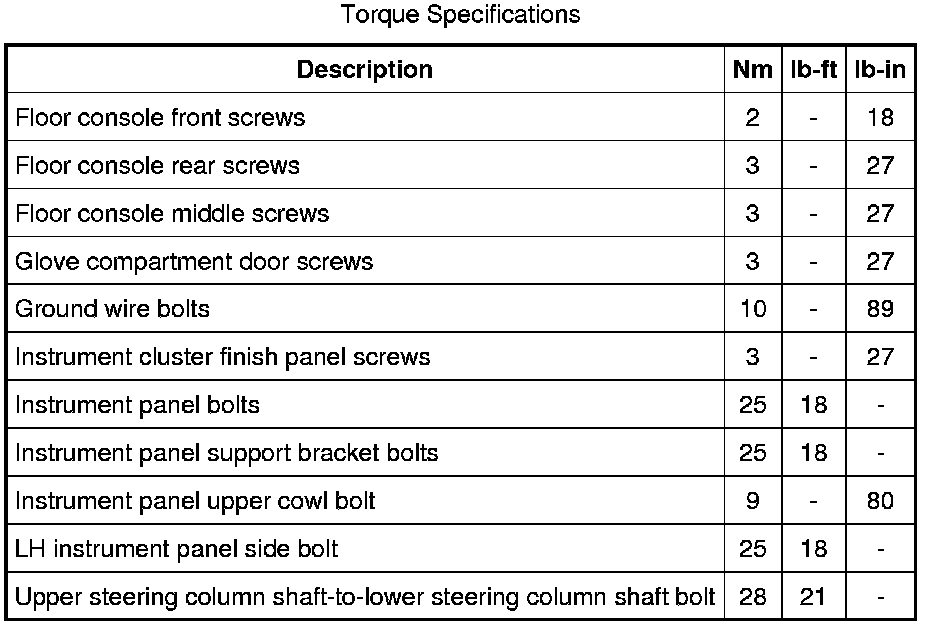 Dashboard / Instrument Panel: Specifications